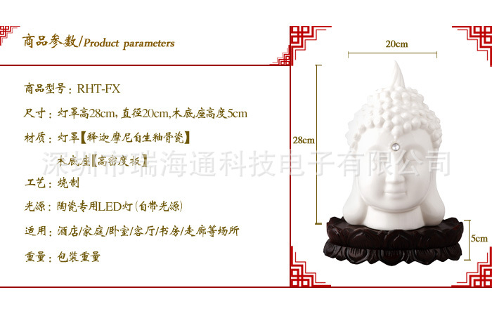 批发、零售陶瓷灯 瑞海通--福建德化自生釉骨瓷 释迦摩尼