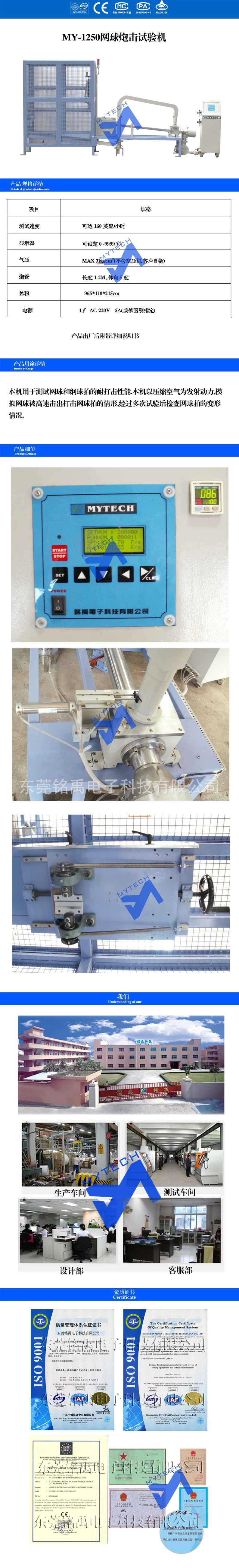 东莞 銘禹 厂家直销 加工定制 MY-1250 网球炮击试验机 测试机