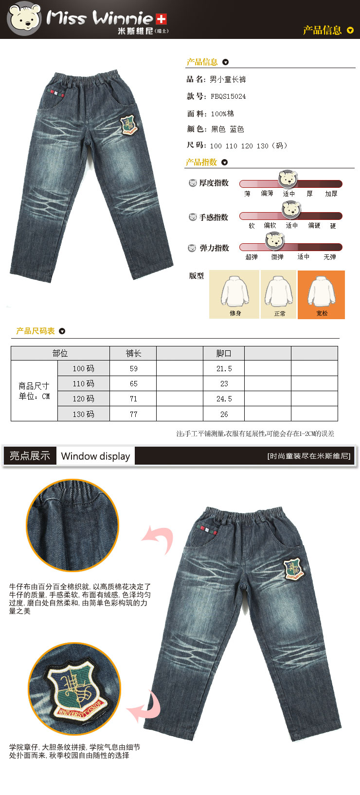 Misswinnie2011秋冬新款上市男女童长裤牛仔裤