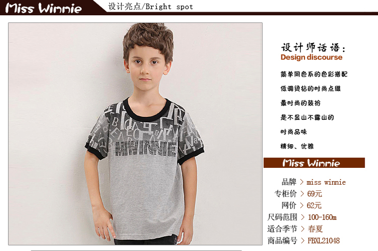 misswinnie瑞士品牌时尚童装 爆款男童T恤 童装工厂