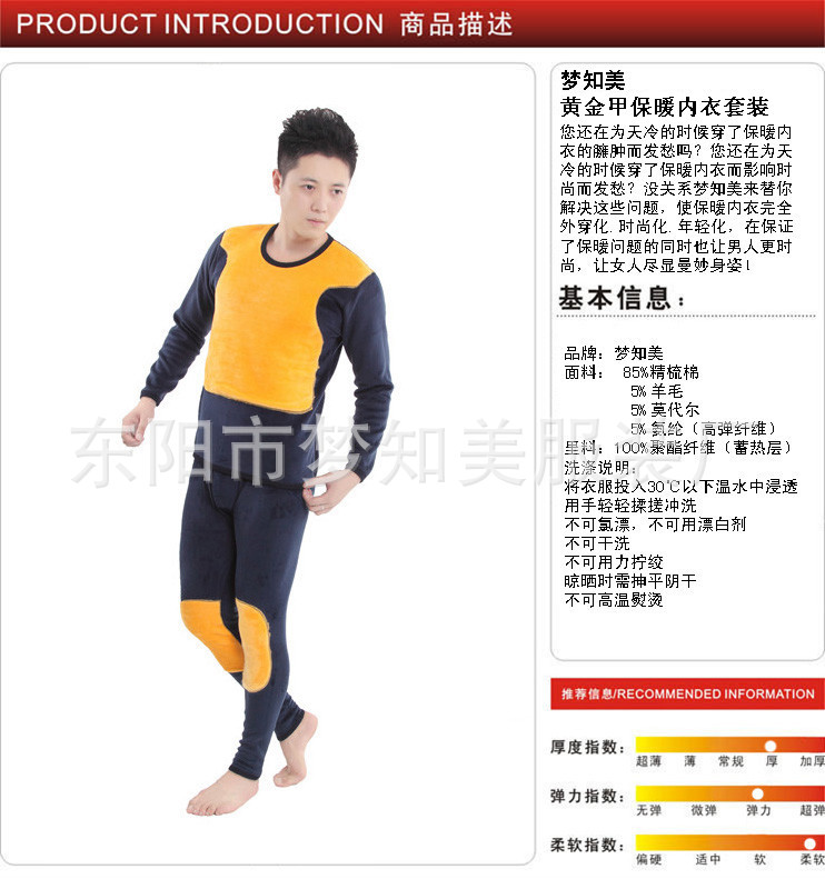 精品梦知美品牌保暖内衣2012新款黄金甲(情侣)男款 1254