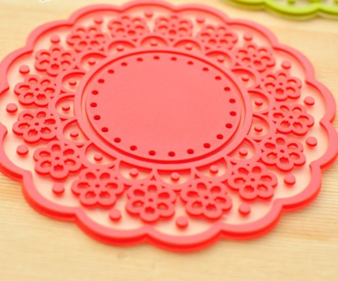 用优质硅胶材质,安全无毒,充分隔热,能够很好的保护您的桌子。正面带蕾丝花纹,背面是平板无花纹的哦~