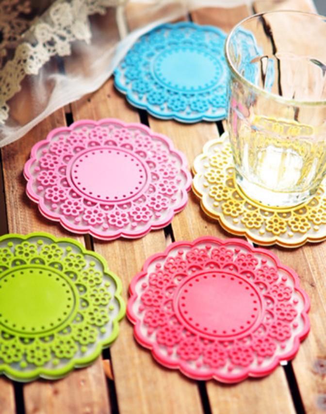 蕾丝杯垫 甜美复古 半透明镂空蕾丝杯垫 硅胶垫/隔热垫 SV11-214