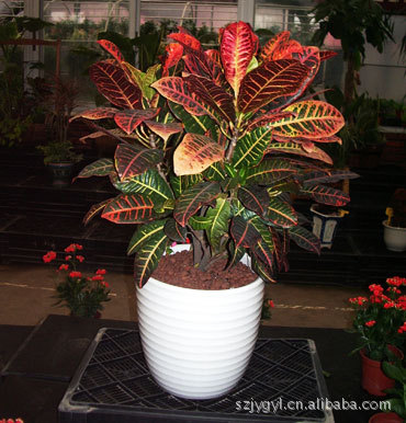 变叶木属喜光性植物,整个生长期均需充足阳光,茎叶生长繁茂,叶色鲜丽,特别是红色斑纹,更加艳红。
