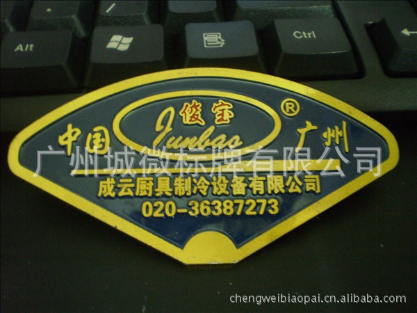【铭牌简介】:城达(城微)标牌有限公司专业制作凹凸铭牌和丝印铭牌。普通凹凸铭牌,经腐蚀工艺或机械冲压制成,凹部填的油漆是硝基漆。涂漆的方法是将铭牌正面全部喷漆,然后再将字体或图案部分的漆去除,裸露出金属字面或图案线条。档次较高的凹凸铭牌只是用烤漆涂覆,或局部涂上色漆,或涂上透明清漆,完全视要求而定。平面铭牌主要是用铝合金材料制做,经丝网印刷,可以是单色的,也可以是多种颜色。平面铭牌具有较高的装饰性能,且价格也较便宜。【承接产品】:标牌、铭牌、铜标牌、铝标牌、不锈钢标牌、高光标牌、腐蚀标牌、丝印标牌、pvc标牌、滴胶标牌、家具标牌、服装标牌、电缆标牌、标牌logo、广告标牌、汽车标牌、冲压标牌、拉丝标牌、五金标牌、箱包标牌、电力标牌、电机标牌、电器标牌、苍南标牌厂家供应铝标牌 箱包标牌 家具标牌等【产品工艺】:印刷、丝印、制模、冲压、铸压、注塑、烤漆、滴塑、景泰蓝、抛光、滴漆、拉丝、高光、氧化电镀......【适用范围】:适用于各种家用电器、电子业、家具、箱包、机械、汽车、摩托车、轻便车、冰箱、电脑、电视、空调、防盗门、玻璃制品、不锈钢杯、礼盒、艺术工艺品等。【产品备注】:具体制作价格是根据你定做标牌的材质、规格、数量、形状、颜色、数量、及当时材料行情等因素来决定的,而非固定的!具体价格请将您的要求告诉我厂,我厂为您报价!欢迎详细咨询