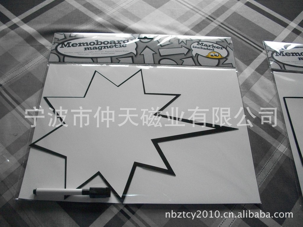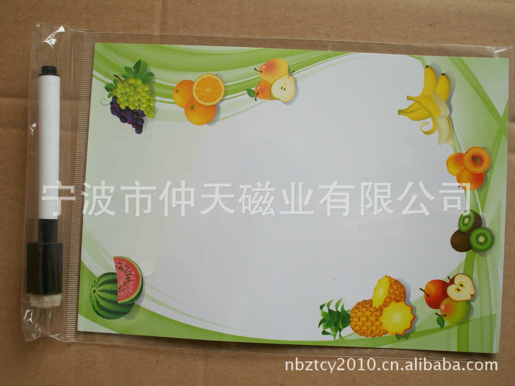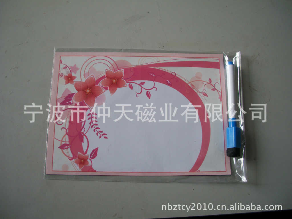 白板:采用软胶磁铁(或纸板)+铜版纸四色印刷裱光膜+可擦笔.