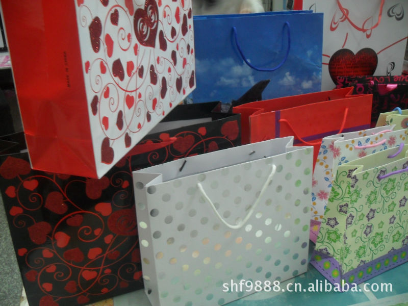 材质有铜版纸、白卡纸、白板纸、牛皮纸、双胶纸、金银卡纸等。手提绳材质有全棉、绦纶、棉绦混合带,环保纸绳,形状有扁平、圆形,可定织、染制特定颜色。印刷采用进口四色、五色胶印,可烫金、烫银,腹膜有亮膜、亚光膜