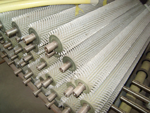 安装:根据面宽度,将毛刷辊安装在一根轴上,采用锁环进行定位,组装简单、快捷。更换磨损毛刷辊非常方便,可由用户自己现场替换,因此,单个毛刷辊的替换成本低,而且,机器停机时间减小到最低限度,所以更加经济节省。由于需求的刷块套数量是与整个轴的磨损成比例的,常规库存得以减少。刷身易于安装,刷具更换简单、迅捷,而且有各种各样的刷丝材料供您选择。