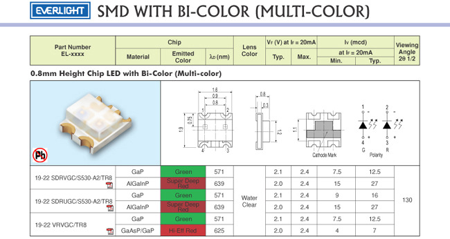 贴片双色灯 亿光贴片双色灯 红绿贴片双色灯 红蓝贴片双色灯