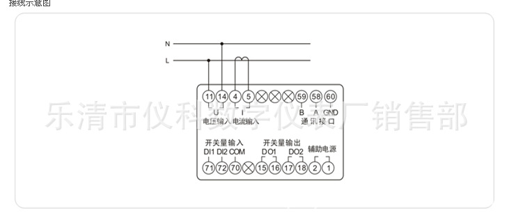 可配:RS485通讯接口、二路开关量输出(2DO)二路开关量输入(2DI)、一路模拟量输出(1AO)