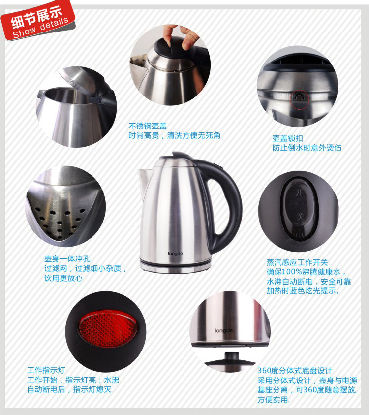 龙的 电水壶NK-20G18I 电热水壶 防水节能不锈钢2L 正品特价