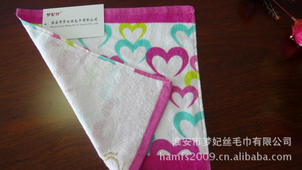 淮安市梦妃丝毛巾有限公司是一家专业从事高档、精品毛巾类产品织造的现代化生产企业。产品原料全部选用上等一级100%纯棉精制而成,经久耐用、纯白度高、手感好、色泽鲜艳、吸水性好、花样丰富、不褪色。公司主要产品有:方巾、面巾、浴巾、地巾、毛巾被、枕巾、沙滩巾和浴袍等上千个品种和各种规格,是一个集科研开发、生产加工、市场营销为一体的企业实体。