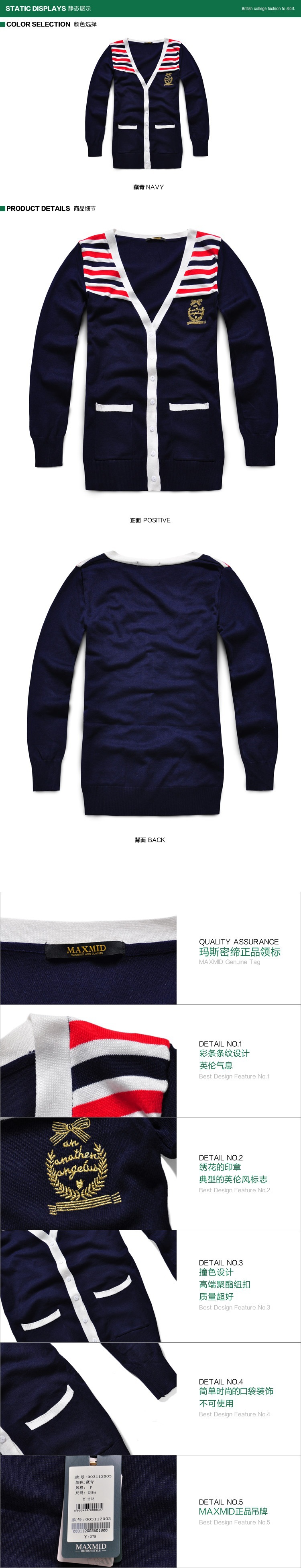 MAXMID秋装英伦学院风女装海军条纹全棉女式针织衫批发003112003