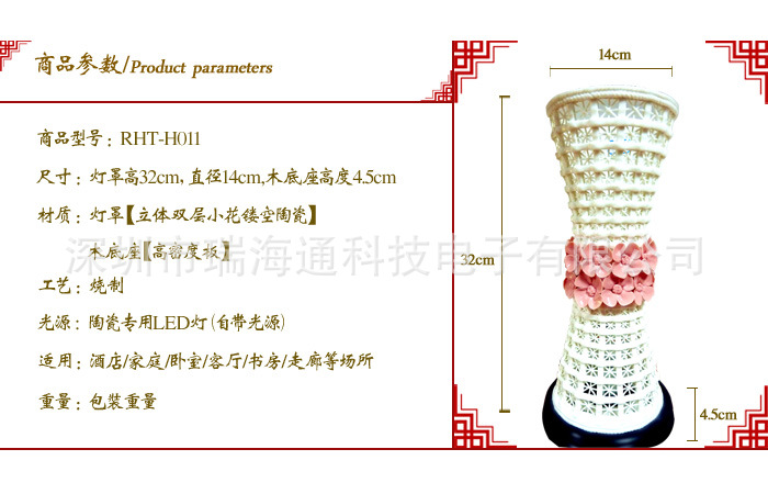 批发、零售陶瓷灯 瑞海通--陶瓷灯 镂空双层花小妖瓶