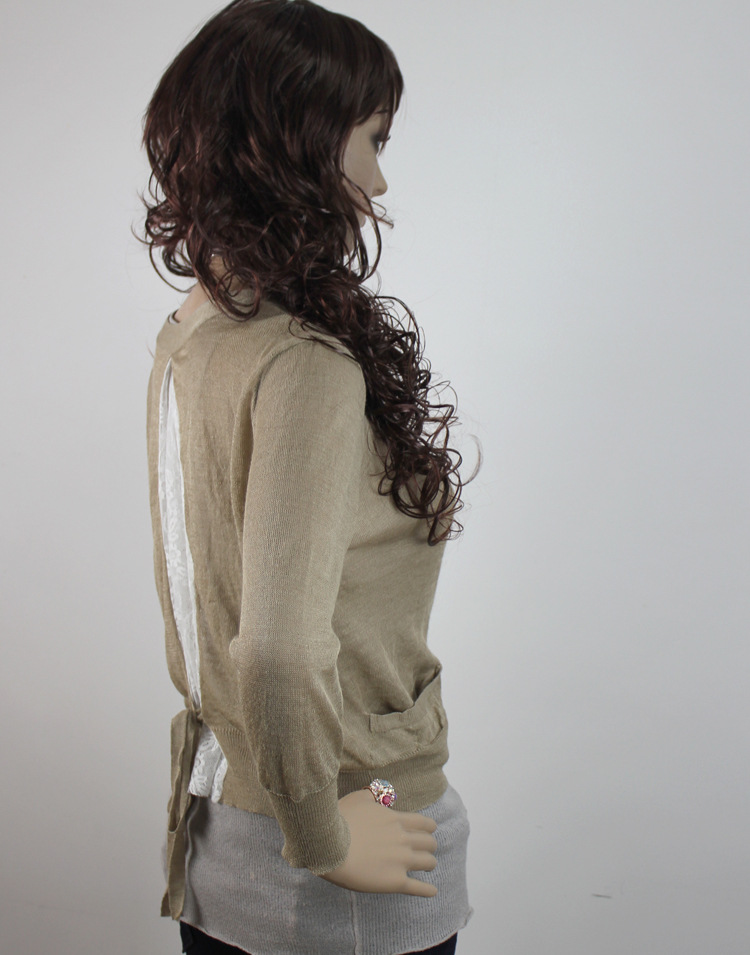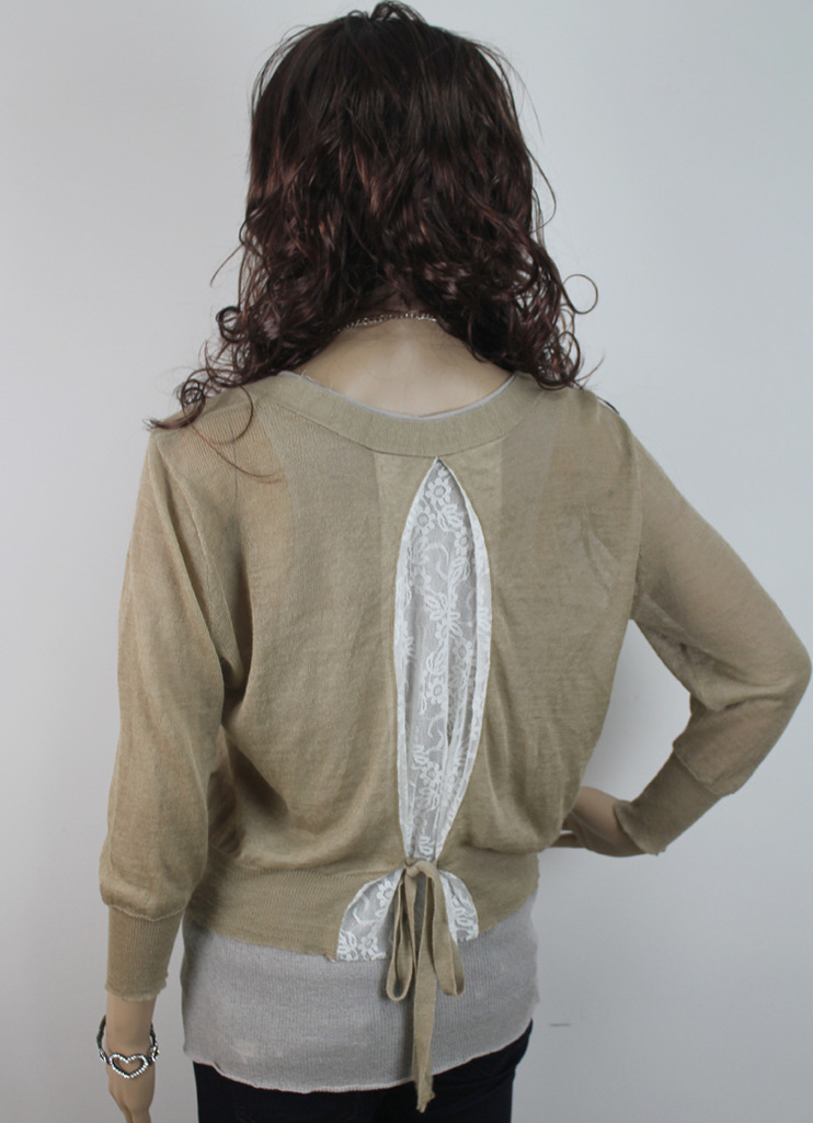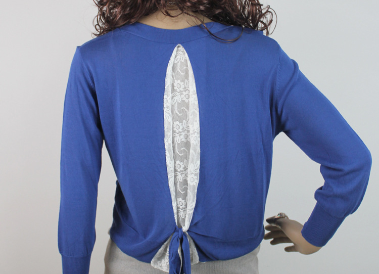 初秋新款上市 XY005 短款针织开衫背部系带 蕾丝网设计