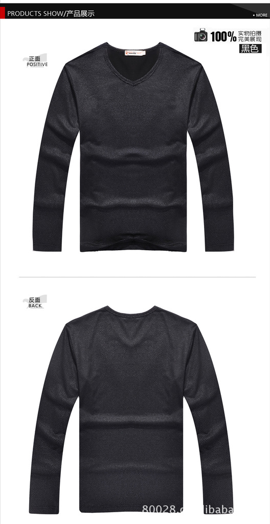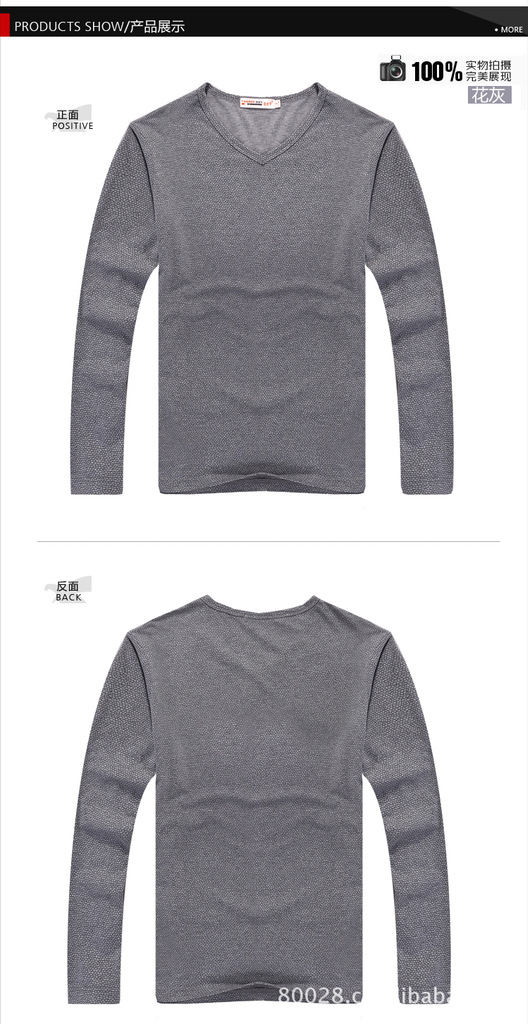 秋装新款韩版男装上衣纯棉男士长袖v领T恤修身休闲打底衫125324