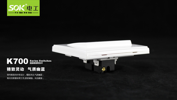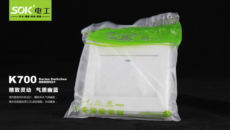 公司专营SOK品牌S6系列SOK 开关插座面板 开关面板 墙壁开关 双控开关 一开双控,开关插座面板,墙壁开关插座,开关插座底盒,防水开关插座,移动排插,工程开关插座,电工照明,节能灯电视电话插等。SOK 开关插座面板 开关面板 墙壁开关 双控开关 一开双控等产品率先通过ISO9001-2000国际质量管理体系认证、ISO14001国际环境管理体系认证、3C认证、欧洲CE认证等多项权威认证。并已被广东科委认定为“广东省高新技术企业”。是一家专业生产销售电工,照明的厂家。