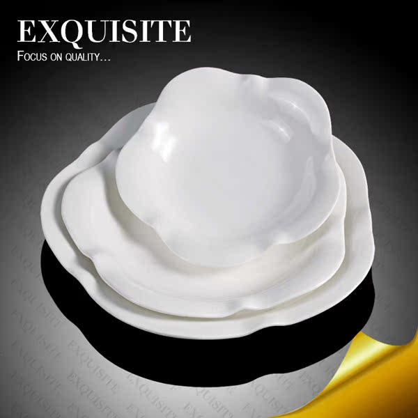 镁质瓷 荷口盘 圆形 盘子 陶瓷 纯白 汤盘 汤碗 餐盘