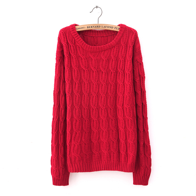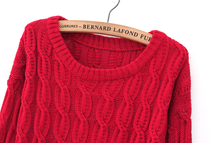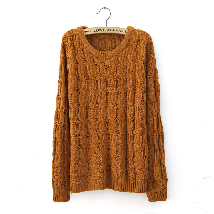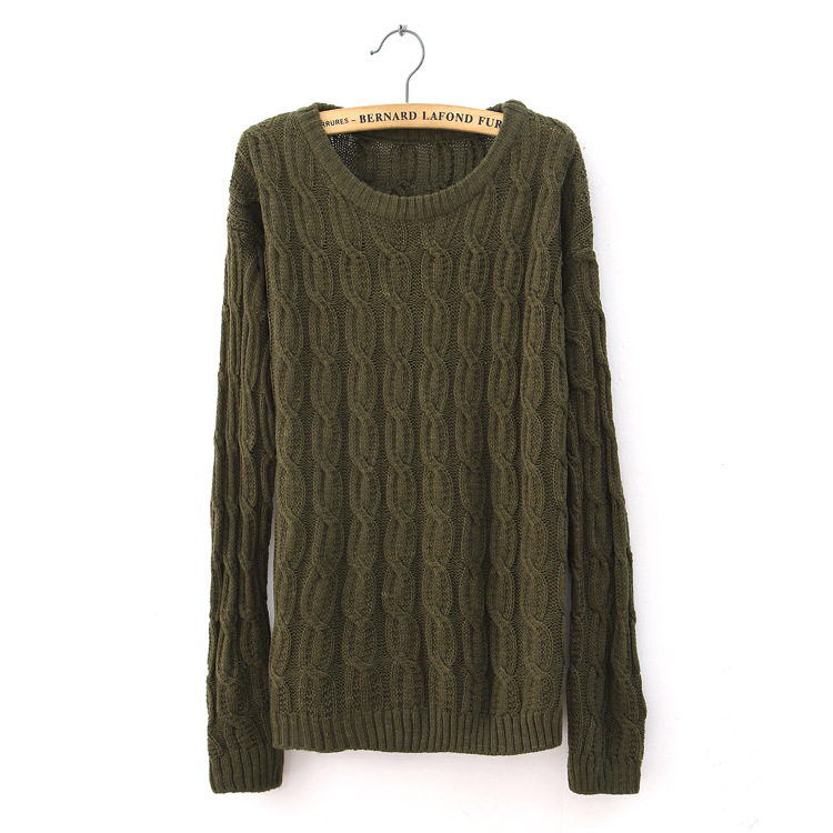 0819韩版2012秋冬新款女装袖粗棒针毛线麻花宽松套头毛衣外套