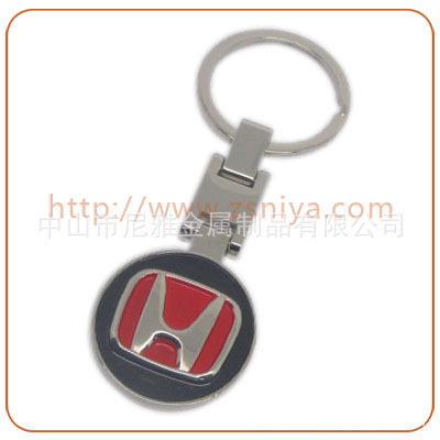 尼雅实业有限公司专业生产金属工艺礼品的厂家。 1,此钥匙扣用锌合金材料制作,表面可电镀各种颜色,再加上很有份量的扣饰,外表光洁无划痕,让您爱不释手; 2,我们共有一千多款钥匙扣供您选择, 也可根据客户提供图纸及样板开模生产; 3,可在产品上面丝印或激光雕刻客户想要的LOGO;