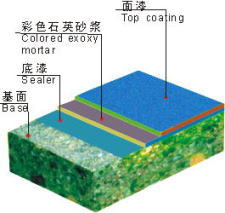 | 性能特点 ◇ 耐冲击、耐重压、机械性能佳; ◇ 防尘、防霉、耐磨、硬度好; ◇ 硬化后收缩率小,无裂缝; ◇ 耐水、耐油污、耐酸碱等一般化学腐蚀; ◇ 外观平整亮丽、色彩多样; ◇ 无接缝、便于清洁、维护方便。 | 系统特征 ◇ 溶剂型、实色、亮光或是哑光; ◇ 厚度1-5mm; ◇ 一般使用年限为8-10年 | 施工工艺