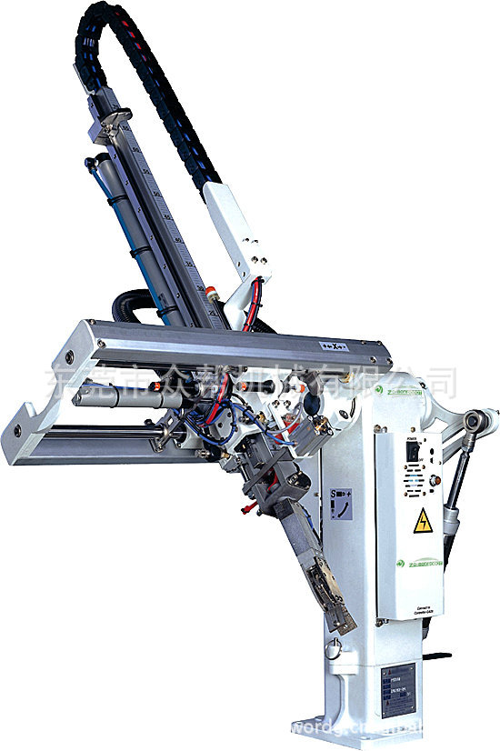 ZX系列适用于50-400吨的各型卧式射出成型机,用于取出两板模的成品及水口取出。型号有550/650/750/850/950,上下手臂型式有单截式及双截式,上下行程从350-950,专用于两板模,单功能用于夹水口,全功能可以夹水口或同时夹水口与吸成品。爪旋机构,可以旋转成品90度。安装此机械手臂可增加产能(20%-30%),降低产品的不良率,保障操作人员的安全性,减少人工,精准的控制生产量,减少浪费。