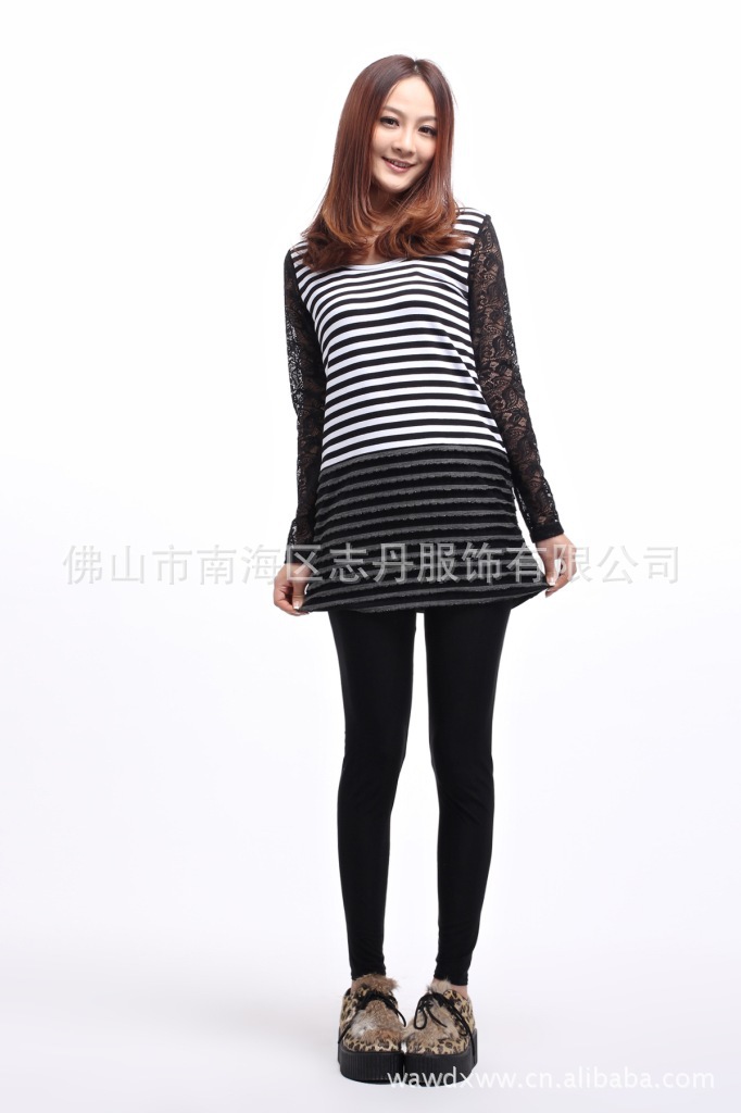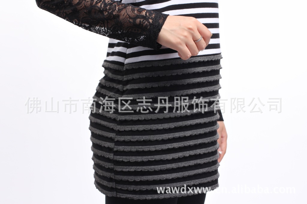 2012新款 韩版全棉条纹拼接长裙