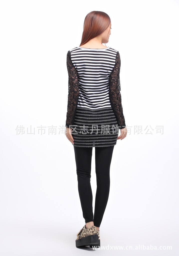 2012新款 韩版全棉条纹拼接连衣裙