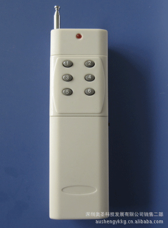 三千米大六键遥控器型号:AU3000-6技术参数工作电压: DC9V工作频率:315、433.92MHz(其它频率可定制)待机电流:0mA工作电流:104mA编码方式:固定码(SC2260芯片)学习码(eV1527)滚动码(HCS301)传输距离:>1000m(开阔地接收板灵敏度在-103dBm以上距离)输出功率:22dBm;传输速率:<10Kbps调制方式:OOK(调幅)工作温度: -10℃~+70℃尺 寸:127×41×20mm按键数目:2、4、6键任选发射功率大、距离远;声表稳频、性能稳定;频点多种、性价比高。应用环境应用领域:遥控开关、防盗报警、遥控门锁、遥控电动卷帘门窗、工业控制产品等。与公司接收系列产品配套使用。备注 外观颜色:灰色;使用时接收频率、解码方式应与接收匹配。