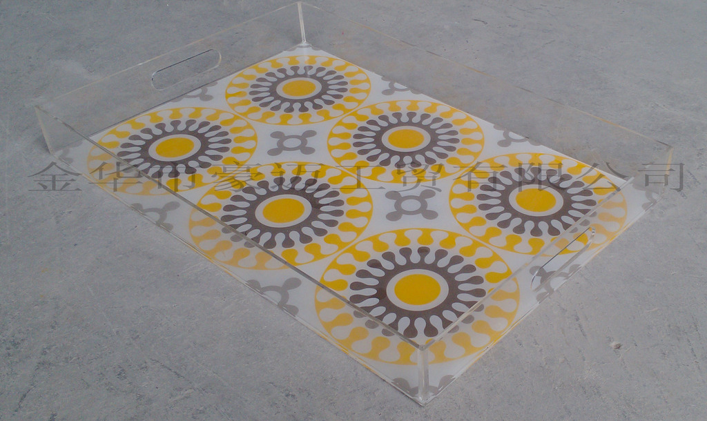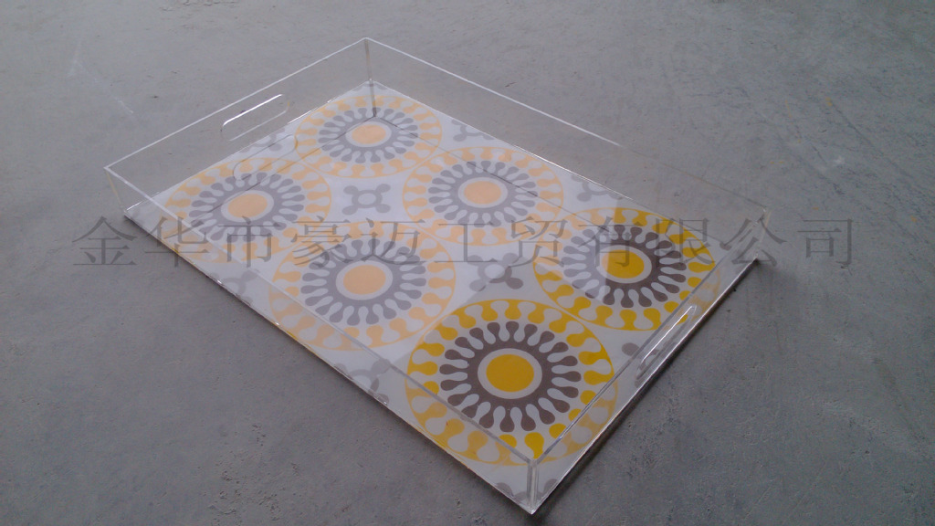 这款透明方形亚克力托盘采用亚克力全新料制成,公差小,底部带印花,坚固耐用,其水晶般的外观可以给人以美的享受。