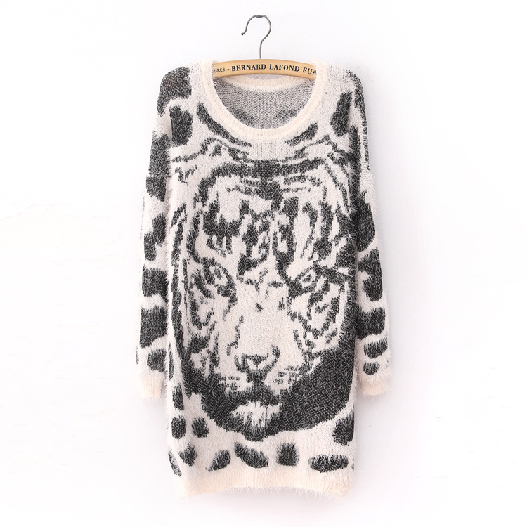 欧美2012秋冬新款女装虎头纹马海毛毛绒宽松套头款 毛衣 外套女