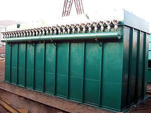 当尘含尘空气进入箱体内,因气流突然扩张,流速骤然降低,这样颗粒大的借自身重力落进集尘箱,其余灰尘被阻留在滤袋外壁。为了保证设备的正常运转,维持一定的设备阻力,DMC型脉冲除尘器采用压缩空气喷吹滤袋,由控制系统完成脉冲,经喷吹管喷出,通过诱导周围大量空气进入滤袋,使滤袋瞬间急剧膨胀,引起一次脉冲振动,将积附在滤袋外壁的灰尘抖落,进入集尘箱,经输送机排出机外。