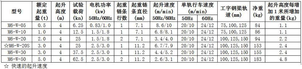 M6-W舞台环链电动葫芦严格按照巡回演出、巡回展览的要求设计制作。外壳采用拉伸冲压钢构,使其轻便灵巧;表面经过黑漆处理,光亮持久。 M6-W舞台环链电动葫芦起升高度为26米或85英尺,还可以根据客户的要求定做,最高可达到40米或131英尺。本产品配有五孔起重链轮,能使链条提升平衡;还装有超载保护离合器,能在发生超载时保护操作人员的安全和产品不受到损坏。 M6-W舞台环链电动葫芦特点: 1、高效、低耗能的电机,无石棉刹车系统。 2、冲压钢构壳体,热处理成形的钢导链板,轻巧而坚固。 3、高强度安全吊钩,承受意外超负荷冲击时不会发生断裂,只会逐渐变形。 4、链条经过镀锌处理,不易生锈;轻巧、美观且耐用的塑制链袋,方便收放链条。 5、吊上吊下都有极限开关装置,能够使电机自动停止,防止链条超出,确保安全;配有可调螺旋式限位开关,可靠性能更高。 6、以正反双向和全天候使用而设计。 7、润滑油脂装在齿轮箱内,防止油滴渗透到舞台上。 8、葫芦的马达密封在铝质的钢圈圆柱形外壳内,永久保护马达。 9、适合与各种控制器和电路分电器相连,操作简便,便于维护。 M6-W舞台环链电动葫芦参数: