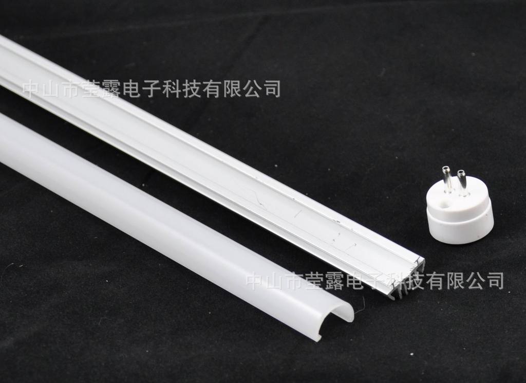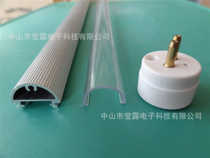 电源外置或两端上置。LED日光灯管面罩是一款用在现代最具节能灯管上的配件,LED日光灯管配件。日光管面罩采用半圆设计,使用日本帝人PC材料(聚碳酸脂)挤押成型。规格:15*1MM,配各1/2铝型材1/2PC日光管面罩组成一套LED日光灯管外壳。其它优质的透光效果和高效的散热效果及精美的外观被LED生产厂商所用。