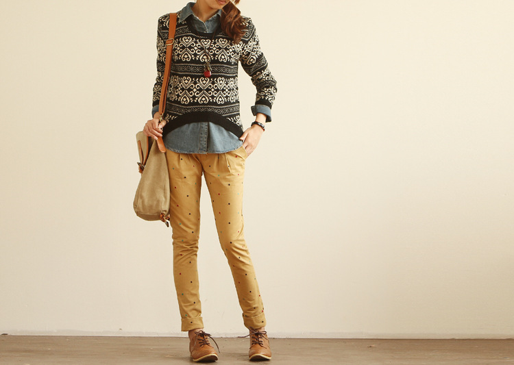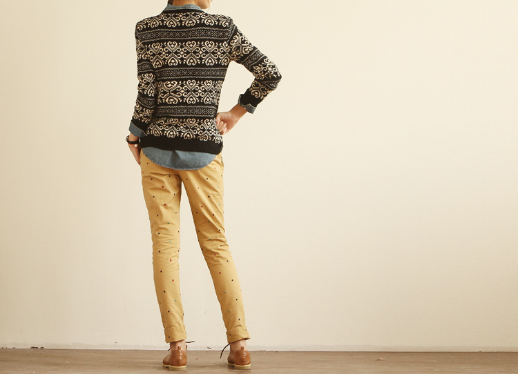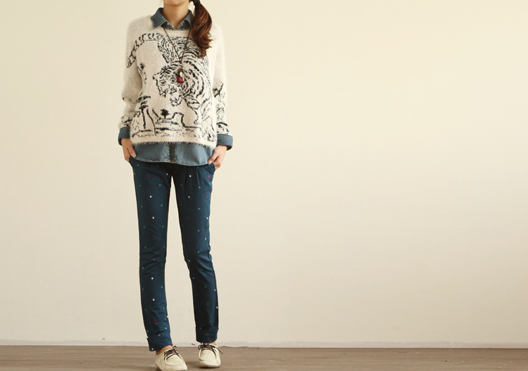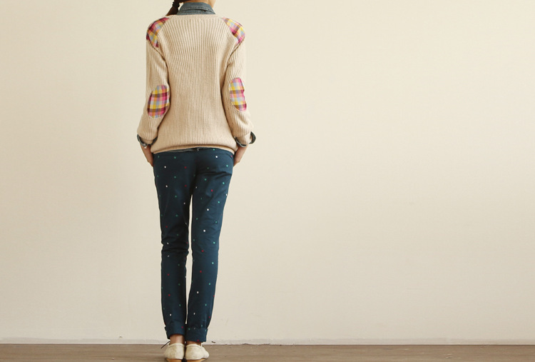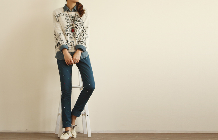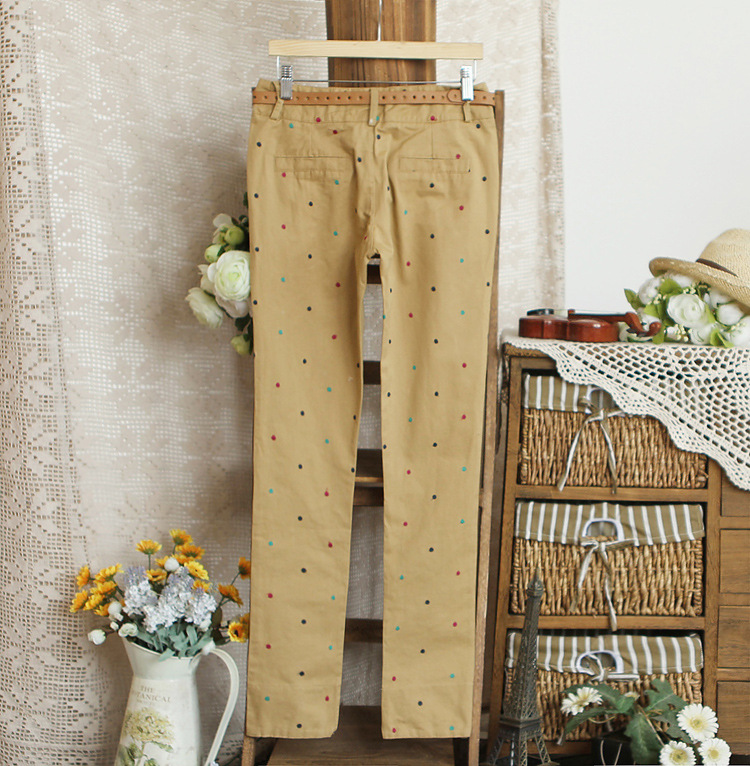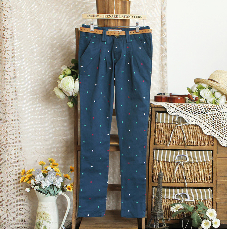 2013春装新款新款日系甜美彩色圆点休闲长裤(送腰带 女