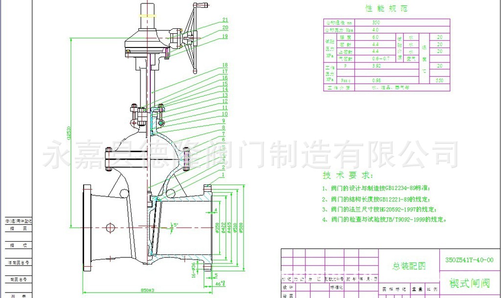 国标闸阀国标闸阀的启闭件是闸板,闸板的运动方向与流体方向相垂直,闸阀只能作全开和全关 , 不能作调节和节流。闸板有两个密封面 , 最常用的模式闸板阀的两个密封面形成楔形、楔形角随阀门参数而异 , 通常为 50, 介质温度不高时为 2°52' 。楔式闸阀的闸板可以做成一个整 体,叫做刚性闸板;也可以做成能产生微量变形的闸板 , 以改善其工艺性 , 弥补密封面角度在加工过程中产生的偏差 , 这种闸板叫做弹性闸板。 国标闸阀,铸钢闸阀的种类 ,按密封面配置可分为楔式闸板式闸阀和平行闸板式闸阀 , 楔式闸板式闸阀又可分为:单闸极式、双闸板式和弹性闸板式;平行闸板式闸阀可分为单闸板式和双闸板式。按阀杆的螺纹位置划分,可分为明杆闸阀和暗杆闸阀两种。