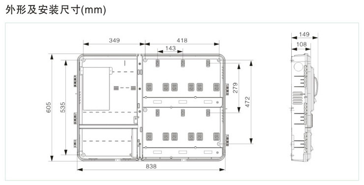 JCELE系列电表箱造型设计美观、线条流畅,箱盖透明清晰,箱内表位、电器元器件位置布局合理,可任意安装各种型号的电器元器件,集抄采集线器等。箱盖采用三向挂钩推进连接箱体,在箱体盖电表位下中部设专用铅封螺丝装置,箱盖下部用铅封螺丝及挂锁与箱体固定互锁,只有电管人员专用铅封螺丝反手和钥匙才可开启。箱盖的全透明方便电管人员清晰读数抄表和及时可直接观察到箱内的各类异常现象。从而提前排除用电中的隐患,实现“安全用电,预防为主”的管理目标。