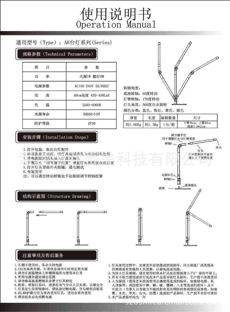 LED台灯护眼灯>整灯功率: | 最亮8W (一个半月只耗1度电) |