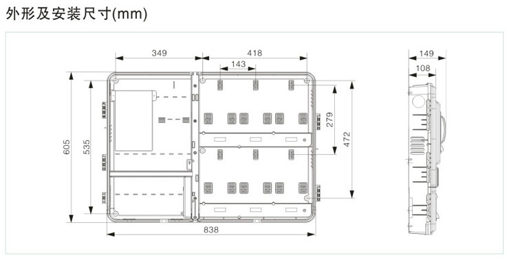 JCELE系列电表箱造型设计美观、线条流畅,箱盖透明清晰,箱内表位、电器元器件位置布局合理,可任意安装各种型号的电器元器件,集抄采集线器等。箱盖采用三向挂钩推进连接箱体,在箱体盖电表位下中部设专用铅封螺丝装置,箱盖下部用铅封螺丝及挂锁与箱体固定互锁,只有电管人员专用铅封螺丝反手和钥匙才可开启。箱盖的全透明方便电管人员清晰读数抄表和及时可直接观察到箱内的各类异常现象。从而提前排除用电中的隐患,实现“安全用电,预防为主”的管理目标。