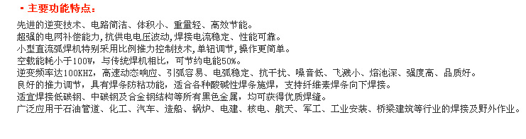 6.良好的推力调节,具有焊条防粘功能,适合各种酸性碱性焊条施焊,支持纤维素焊条向下焊接。