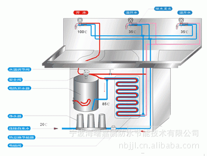 零压力:特设水电联动阀专利技术,系统在常压下工作,彻底解决了压力式节能饮水机安全隐患问题。