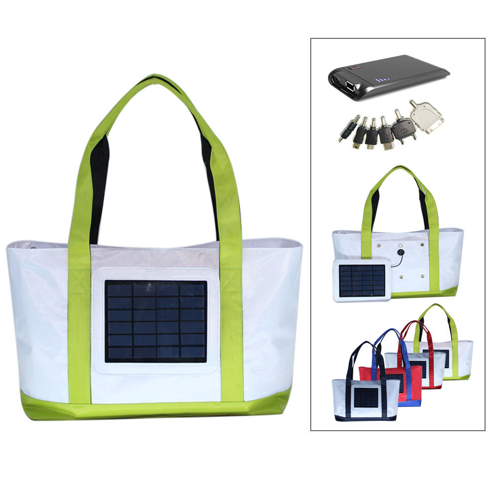 太阳能沙滩充电包外形时尚,是低碳、节能绿色环保产品,是沙滩玩耍的好伴侣也是地震、洪水、冰雪、停电等好帮手。