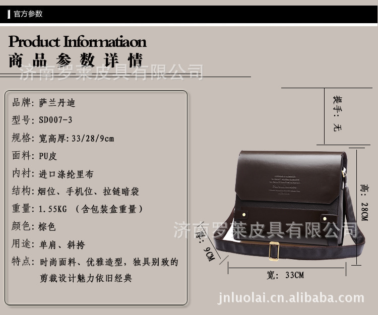 济南罗莱皮具有限公司是一家在箱包领域经营多年的公司,靠着良好的信誉,可靠的品质,生意日渐兴隆,在阿里巴巴上的经营已经有相当的规模,在国内生意日渐兴隆的同时,国际通道也在启动的路上,不足之处欢迎各位监督及献言献策!