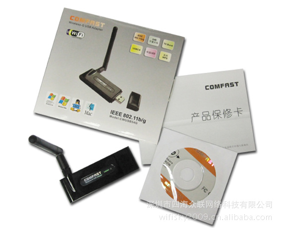 型号:CWUSB54G芯片:RT2070支持: 54/48/26/24/18/12/9/6M或11/5.5/2/1M速率自适应符合: IEEE802.11b,IEEE802.11g标准支持: Windows98SE,Me,2000,XP,Vista,7,MAC系统加密方式:支持64/128/152位WEP加密,支持WPA/WPA-PSK、WPA2/WPA2-PSK等高级加密方式