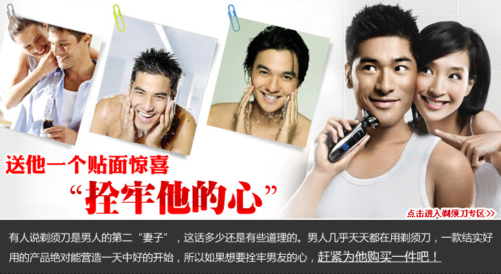 飞利浦HQ902剃须刀 干电式全身水洗浮动旋转2刀头剃须刀 联保