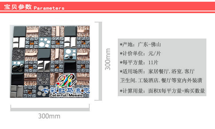材 质:树脂马赛克 重 量:约16KG/平方米
