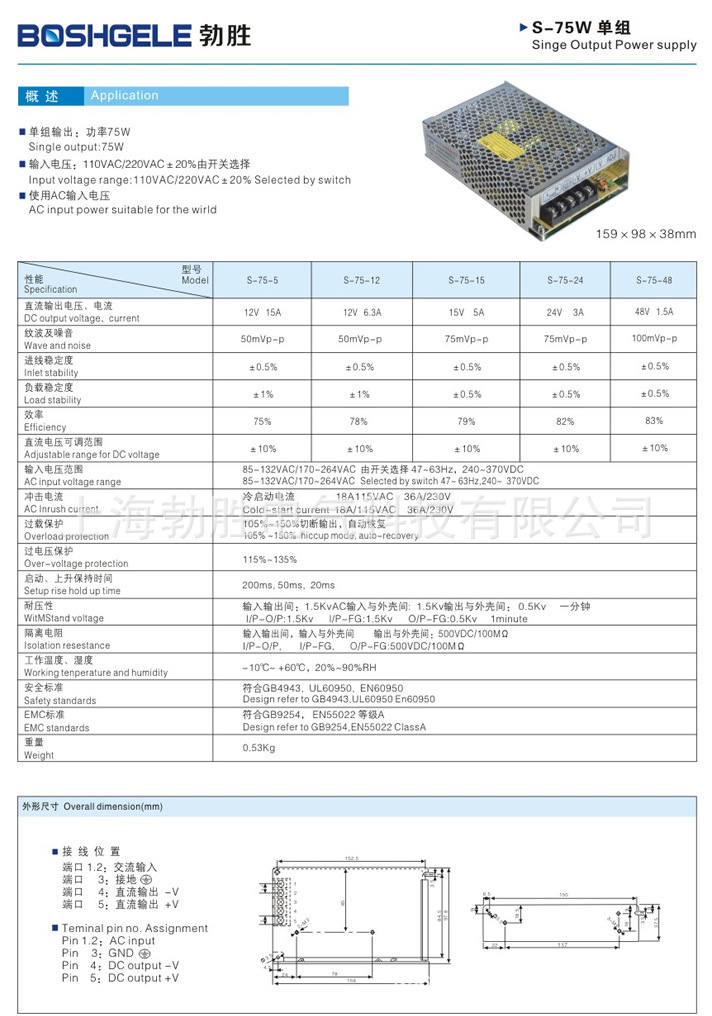 供应同等于明伟台湾明纬S-75W-12VLED与监控专用开关电源。