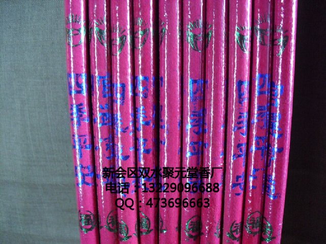 产品特点:香体质量光滑,燃点稳定,包装精美。3支/包,使用,携带方便,有黄、红、原(本色)共三色.适合家庭使用。