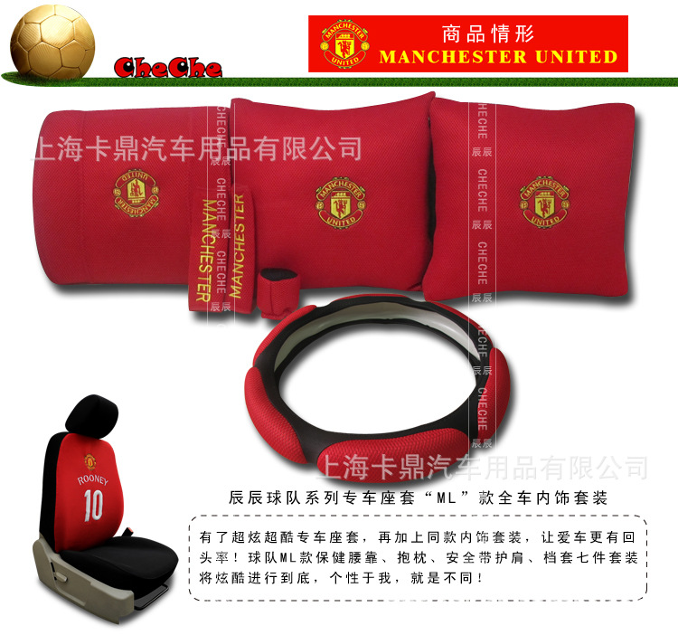 球队汽车七件套,把套 1 挡套 1 腰靠1 抱枕 2 护肩 2
