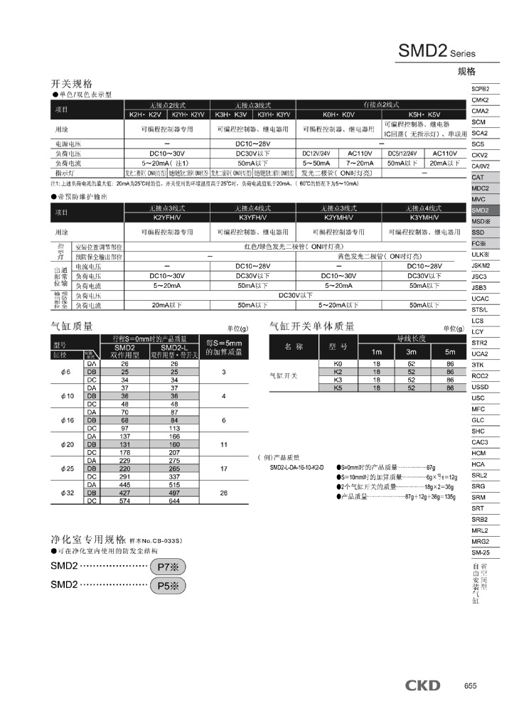 1.CKD产品系列:气源处理元件、方向控制阀、执行元件、空气组合元件、真空元件、管子及接头;